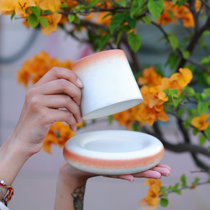 SUNSET GLOW OMBRE CERAMIC CUP AND SAUCER